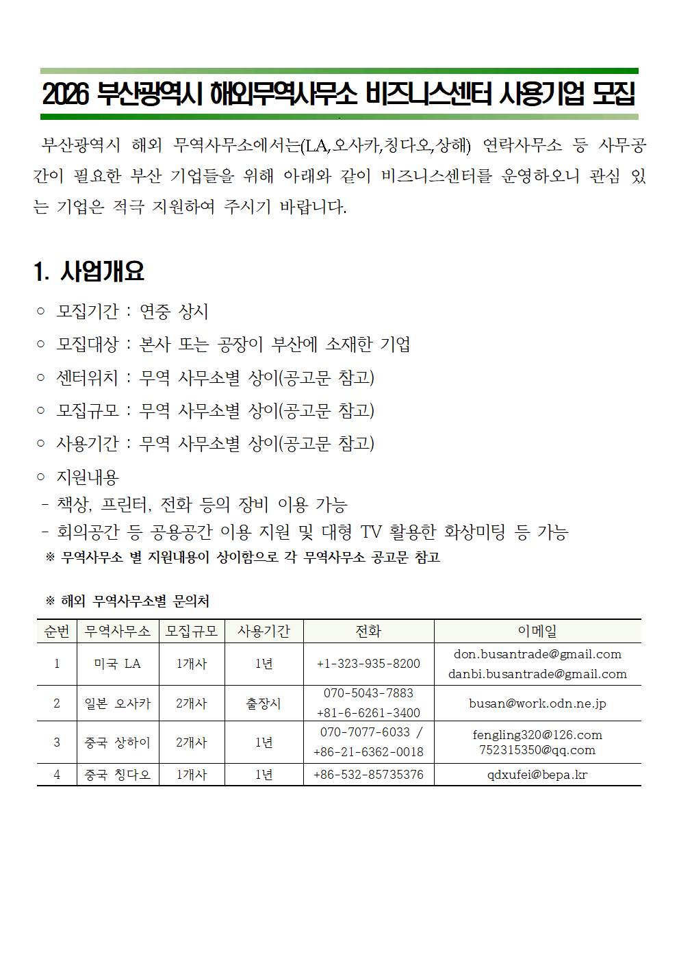(모집 공고)2026 부산광역시 해외무역사무소 비즈니스센터 사용기업 모집.hwp