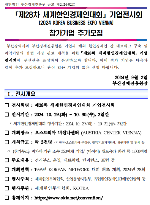 '제28차 세계한인경제인대회 기업전시회' 추가모집