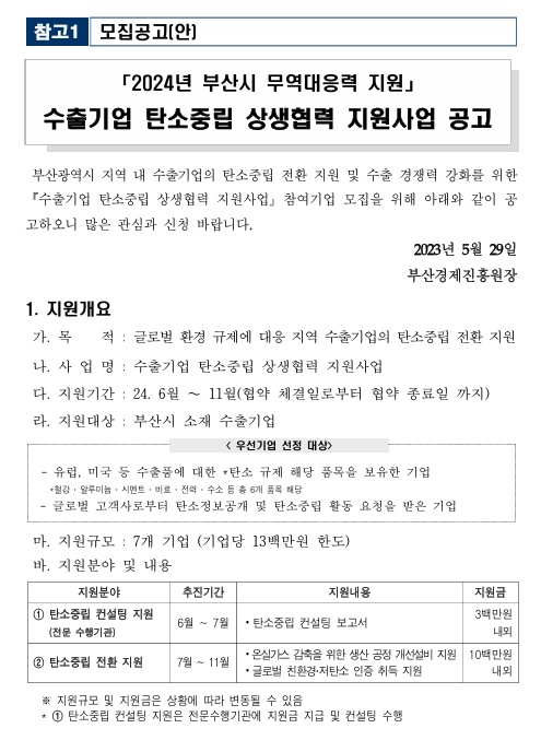 '수출기업 탄소중립 상생협력 지원사업' 자세한 사항은