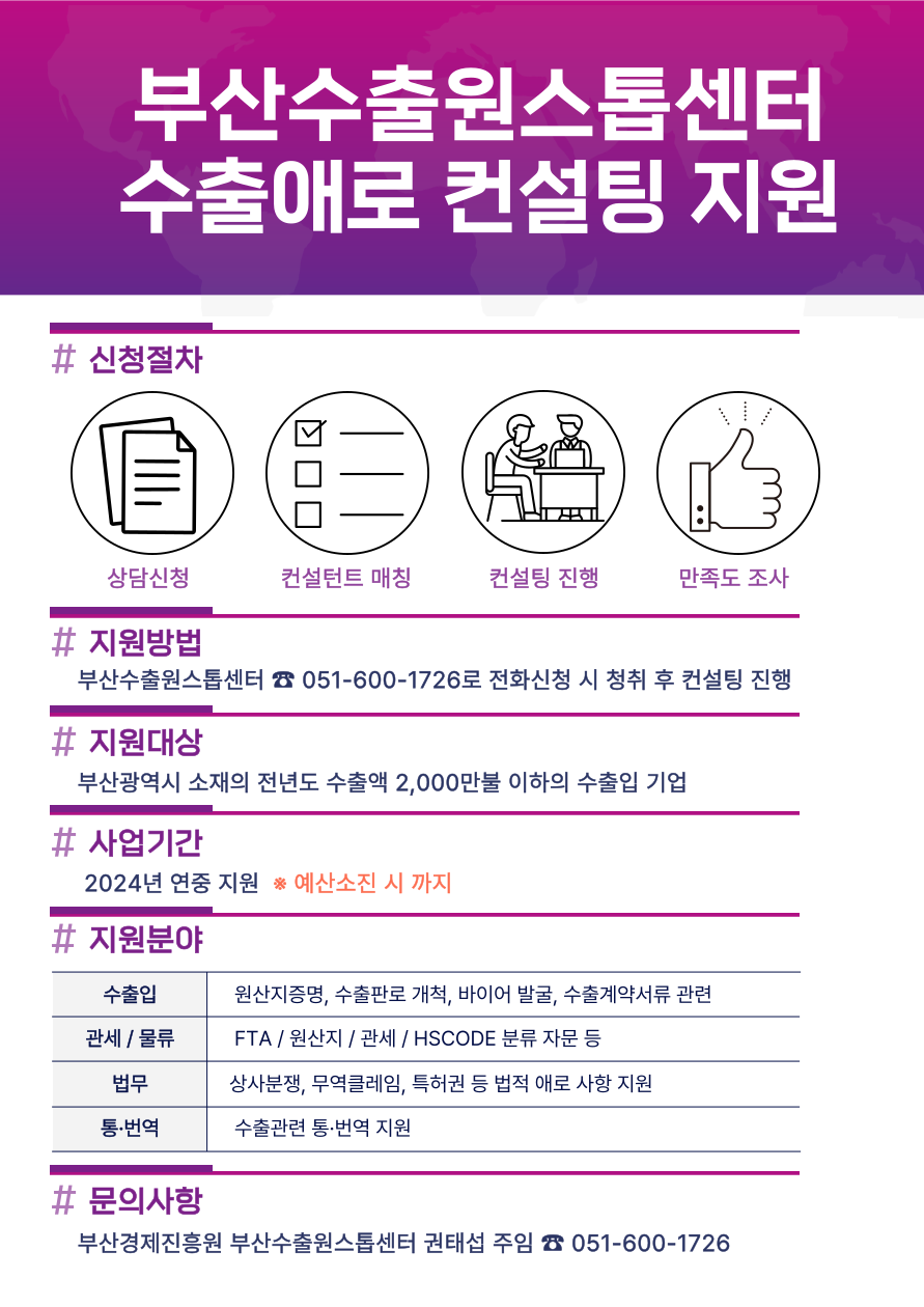 1. 사 업 명 : 2024 부산수출원스톱센터 수출애로 컨설팅 지원