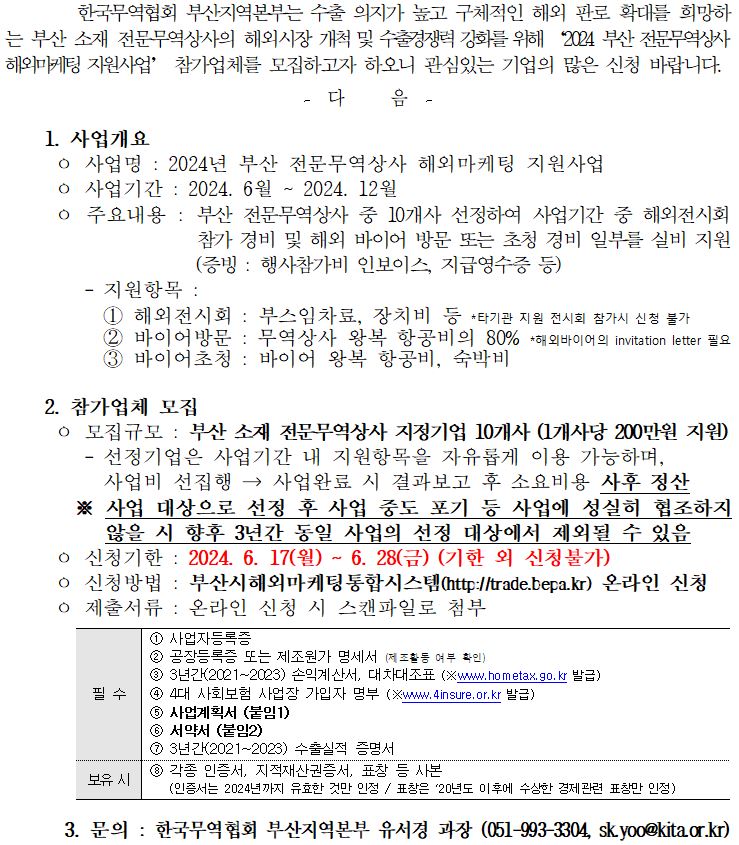 2024 부산 전문무역상사 해외마케팅 지원사업